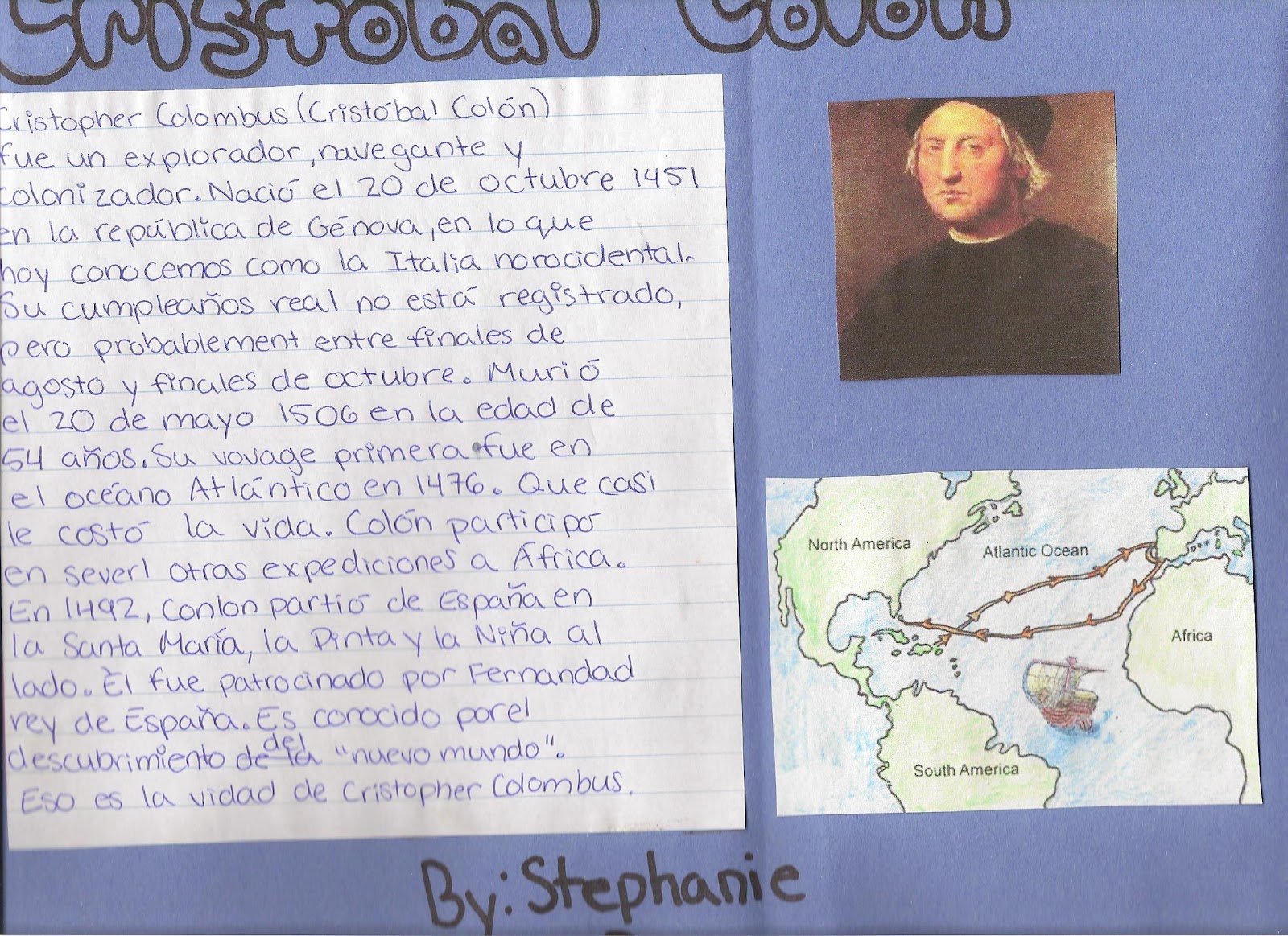 Hemos estado trabajando "EL DESCUBRIMIENTO DE AMÉRICA" y los estudiantes de los grupos de 7ºA1, 7ºA2 y 7ºB3 de Newark han hecho un proyecto acerca de CRISTOBAL COLÓN y sus viajes al nuevo mundo. También en el aula de Queens lo he trabajado con el grupo de 6º7º. Aquí expongo una pequeña muestra de sus trabajos.